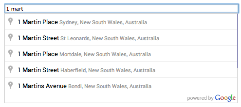 <input id="geocomplete" type="text" placeholder="Type in an address" size="90" />